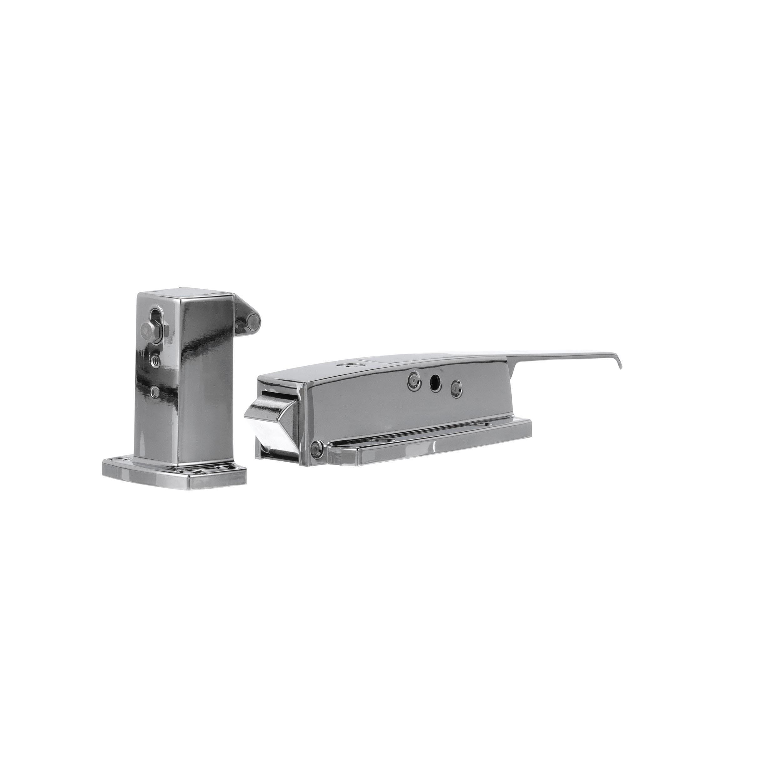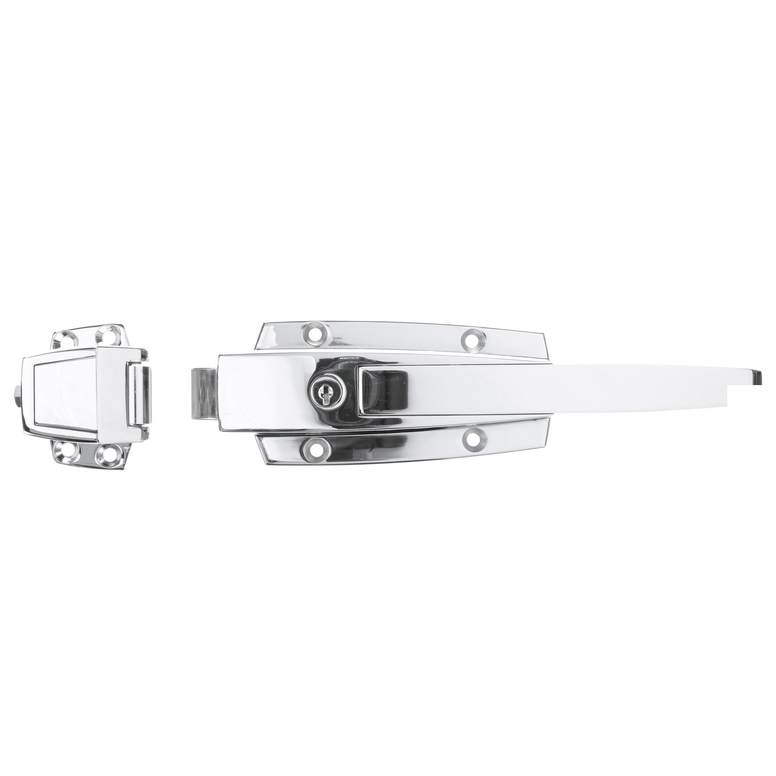1-5/8" to 2-1/2" Offset Polished Chrome Heavy Duty Walk-In Cooler Door Safety Latch with Cylinder Lock and Strike