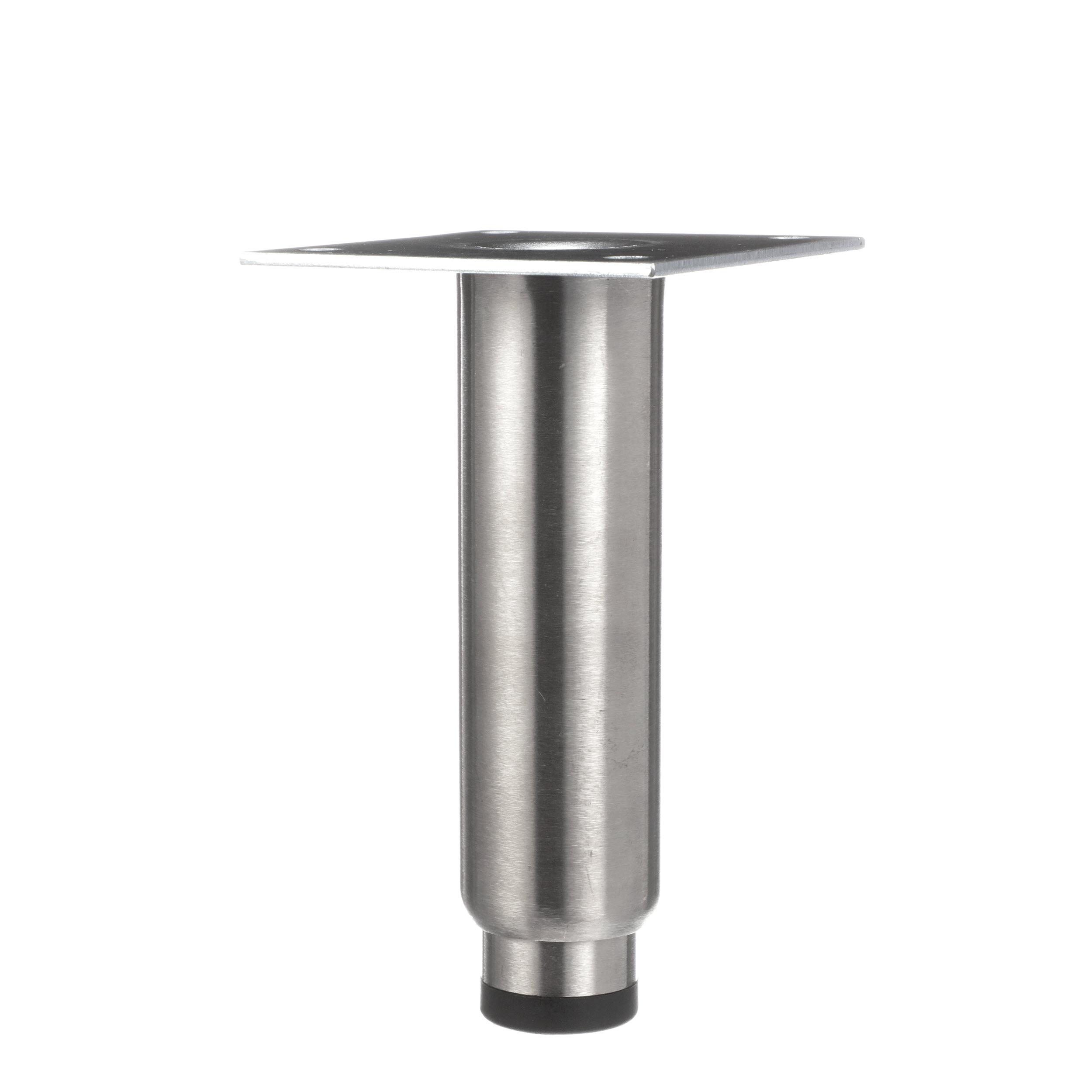 - 1-5/8" OD x 6" H Stainless Steel Heavy Duty Equipment Leg With 3-1/2" Square Removable Mounting Plate And Adjustable Black Nylon Toe