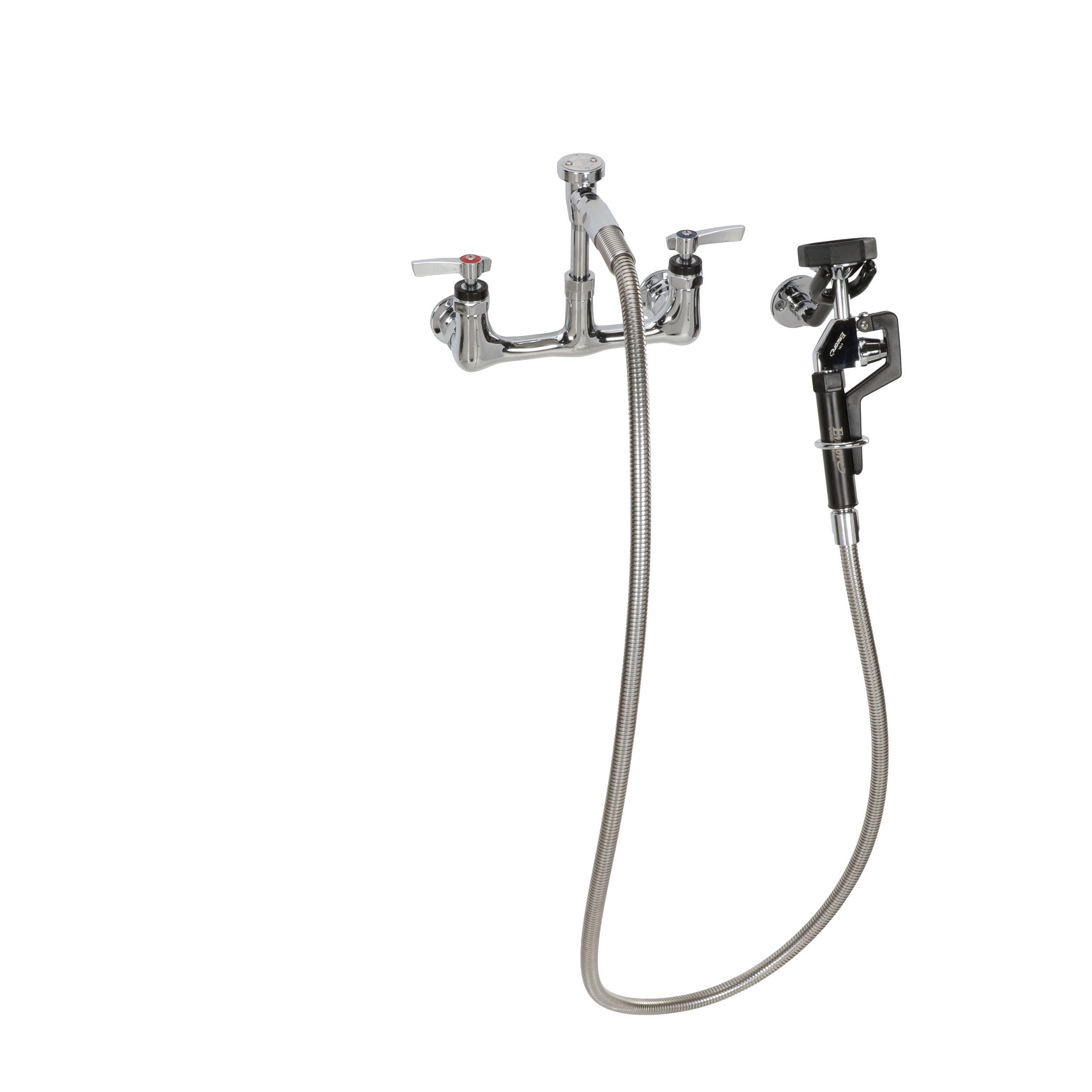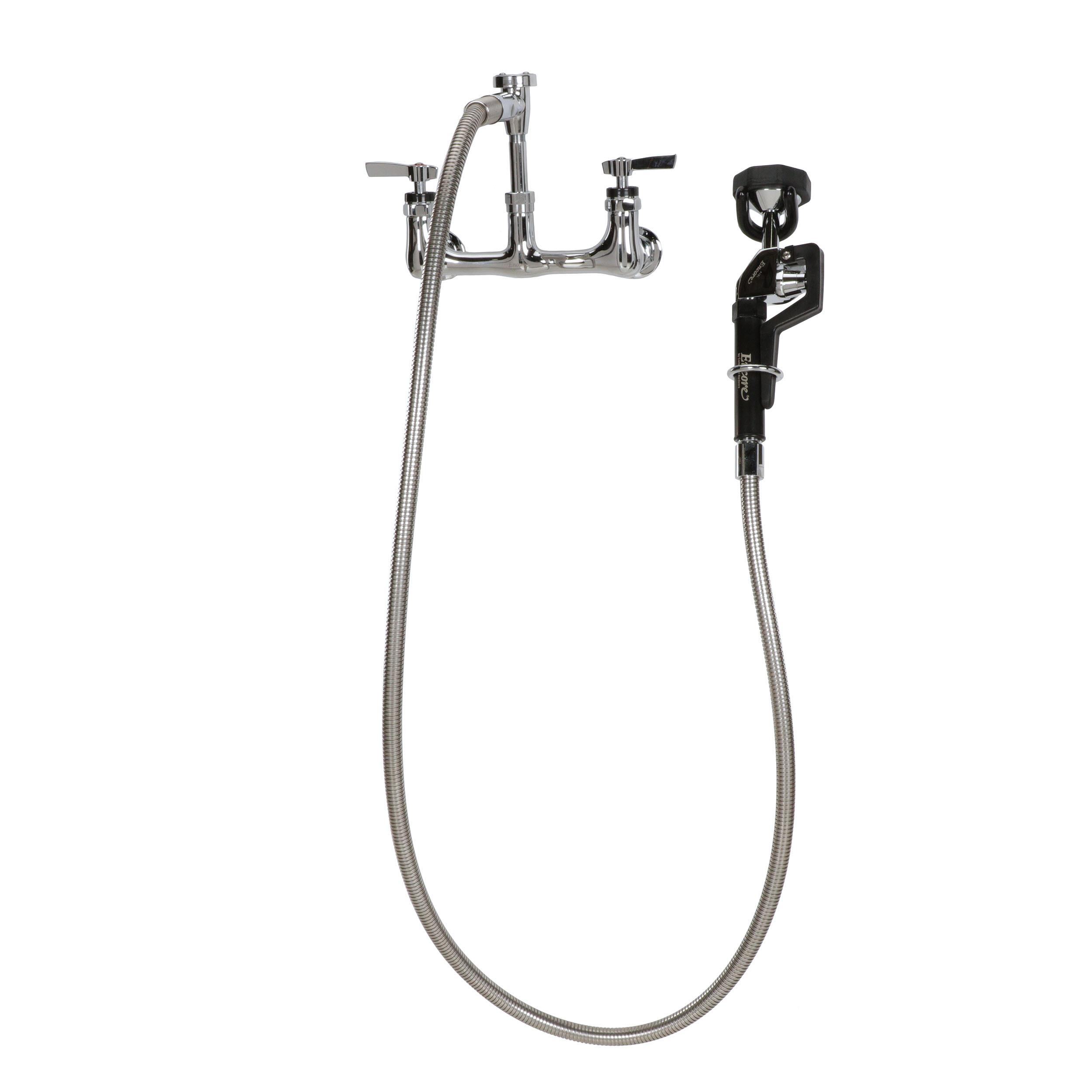 Encore® 8" OC. Brass Chrome Plated Wall Mount Utility Spray Assembly Angled Spray Head Add on Faucet with 12" Spout and 96" Hose